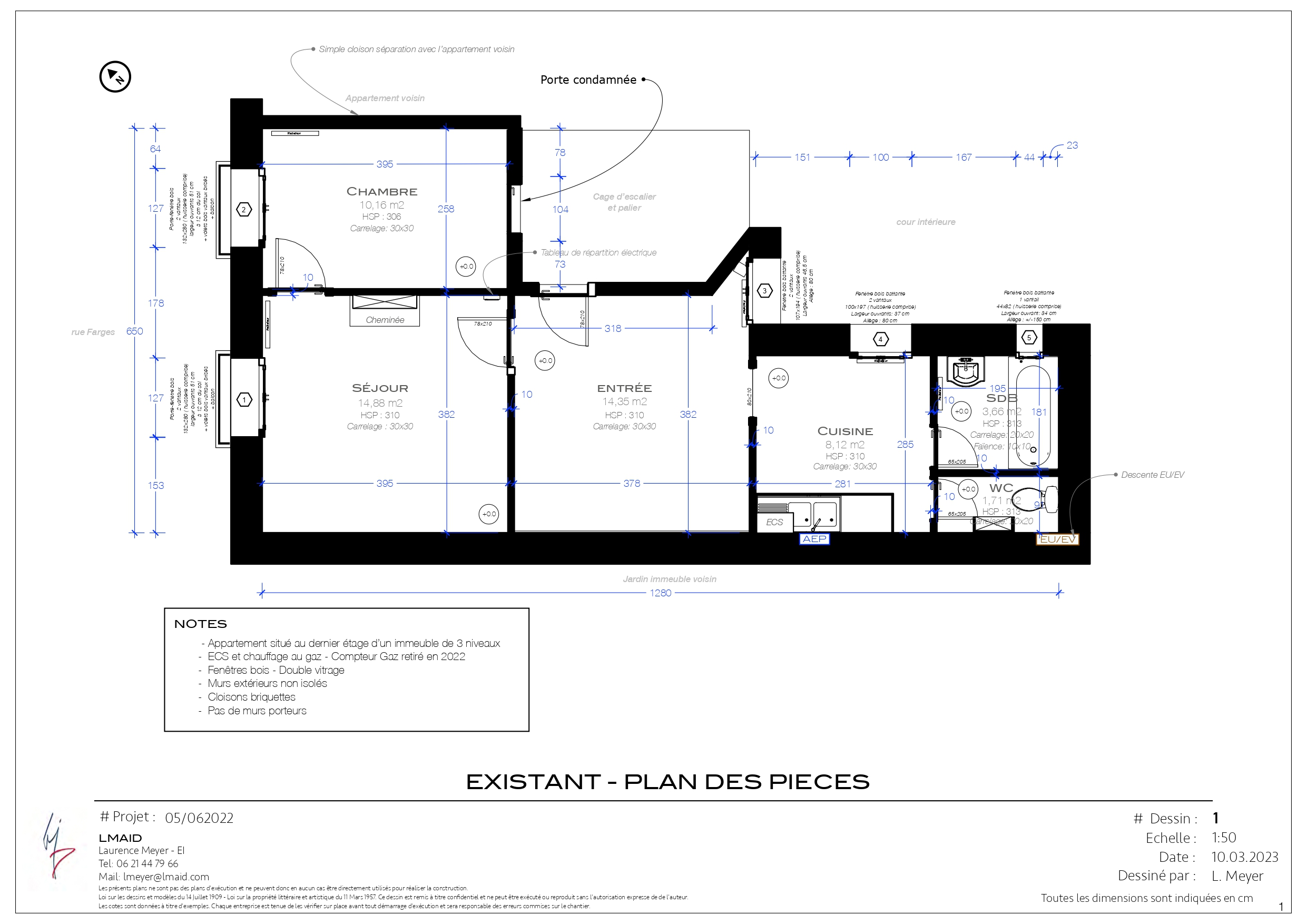 La jeune propriétaire de cet appartement avait des exigences précises pour sa rénovation intérieure. Elle souhaitait supprimer l’alimentation gaz et moderniser le système de chauffage, améliorer significativement l’isolation thermique de l’appartement, mettre l’installation électrique aux normes, créer une véritable entrée et repenser la distribution des espaces, refaire entièrement la salle de bains et les toilettes, concevoir une cuisine fonctionnelle ouverte sur le séjour, et enfin, poser un parquet pour apporter chaleur et élégance à l’ensemble.