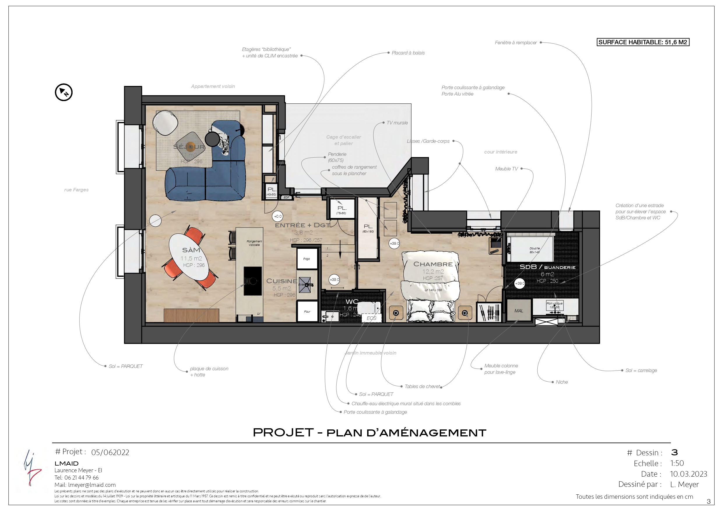Face à cet espace libéré, LMAID a proposé une redistribution complète de l’appartement. Objectif : créer un lieu à la fois fonctionnel, agréable à vivre, chic et reposant.