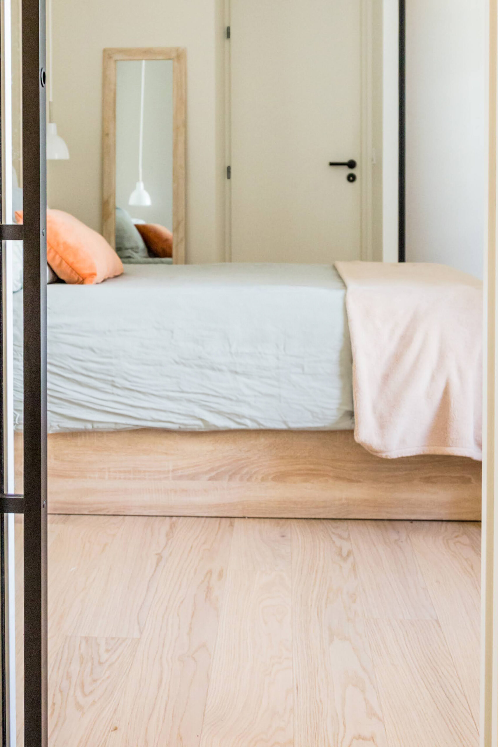Le parquet Kahrs Life, dans une teinte claire et douce, unifie l’ensemble des espaces et apporte le côté chaleureux recherché.