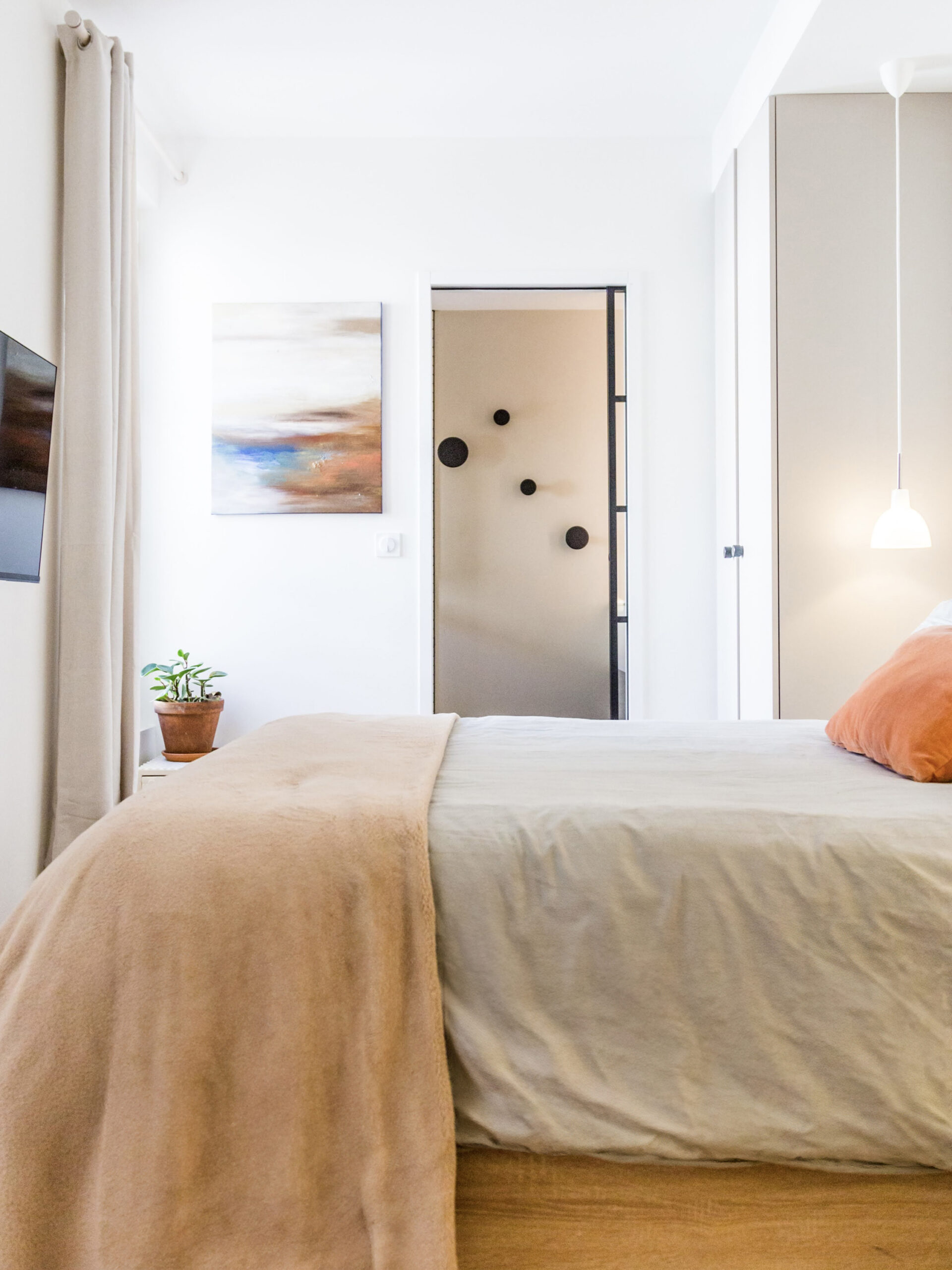 Aujourd’hui, cet appartement offre à sa propriétaire un cadre de vie lumineux, fonctionnel et apaisant. Un lieu à son image : jeune, affirmé, mais élégant